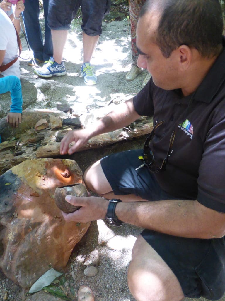 Iniciem la jornada viatjant per l’escènica carretera de la costa que passa adjacent al Mar del Corall en direcció a la localitat Mossman. A Kuyu Kuyu – Cooya Beach – els Kubirri Warra brothers ens ensenyaran com pescar amb una llança i també com recol·lectar mol·luscs utilitzant mètodes tradicionals. Ells encara segueixen les tradicions dels seus avantpassats en aquest ambient únic on hi interactuen tres ecosistemes: la platja, els manglars i l’escull de corall. Caminar descalç per la platja i entre els manglars és una experiència/aventura com cap altra que hagis viscut.